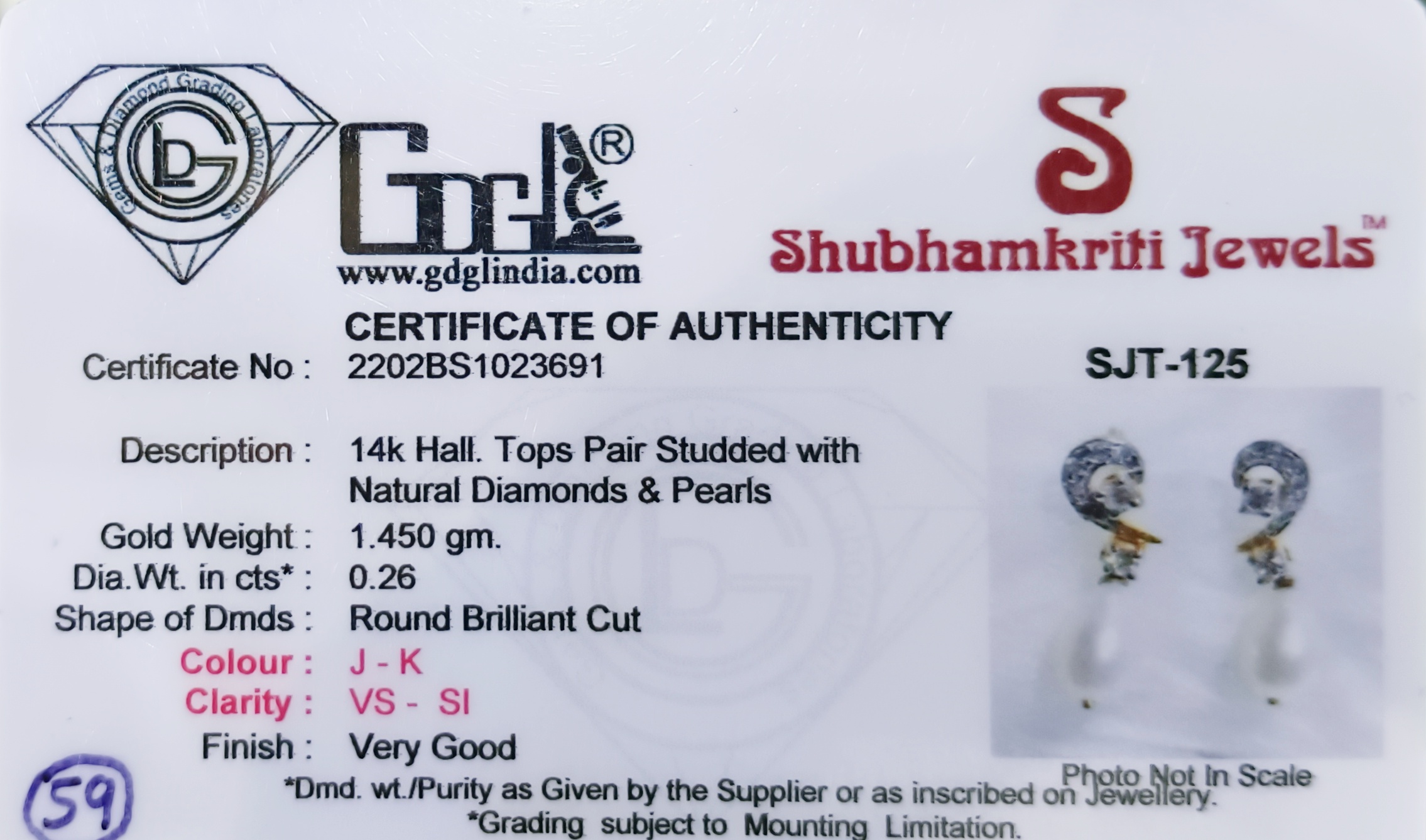 Its 14k Hallmarked Tops pair studded with natural Diamonds With pearls certified by GDGL (GEMS AND DIAMOND GRADING LABORATORIES)