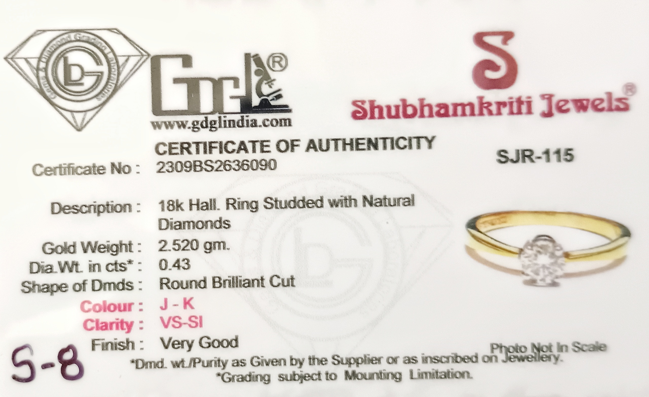 Its beautiful Diamond ring. 18k hallmarked Ring studded with natural Diamonds certified by GDGL (GEMS AND DIAMOND GRADING LABORATORIES)