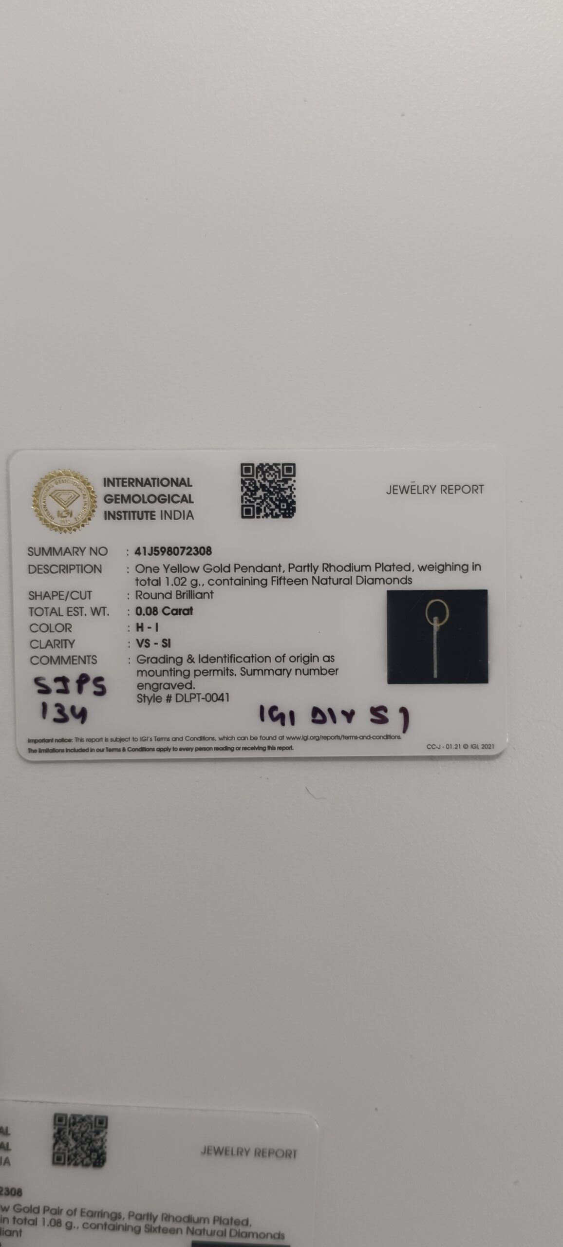 Its 18k Hallmarked Pendant studded with natural Diamonds certified by IGI