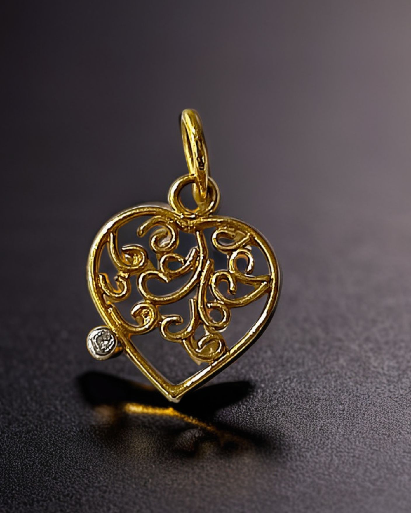 Discover the elegance of intricate craftsmanship with this stunning 14K gold filigree heart pendant, adorned with a sparkling diamond. Designed to symbolize love and grace, this delicate yet radiant pendant features a beautifully detailed swirl pattern, blending sophistication with charm. A perfect gift for a loved one or a treasured addition to your jewelry collection. Explore timeless beauty with Shubhamkriti Jewels’ signature craftsmanship.