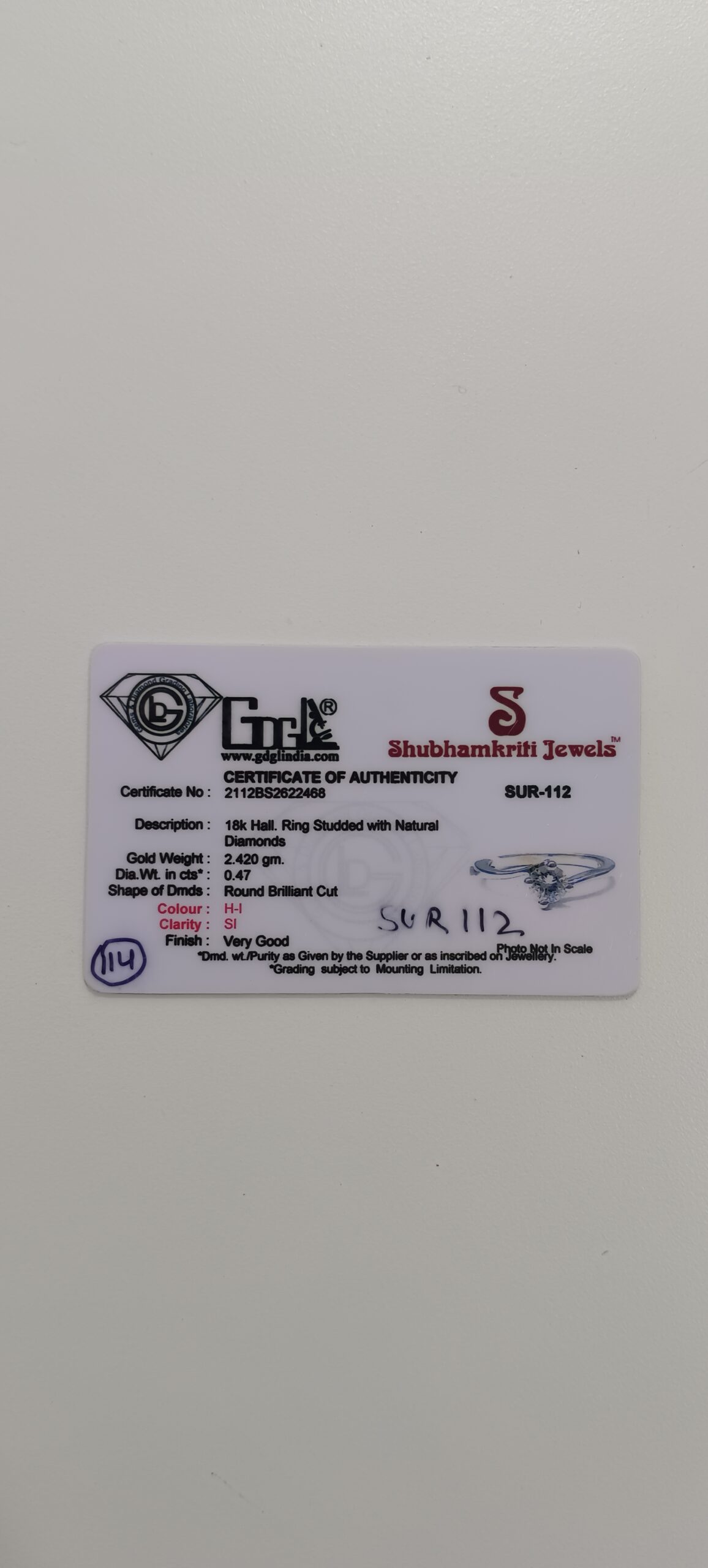 Its 18k Hallmarked Ring studded with natural Diamonds certified by GDGL (GEMS AND DIAMOND GRADING LABORATORIES)