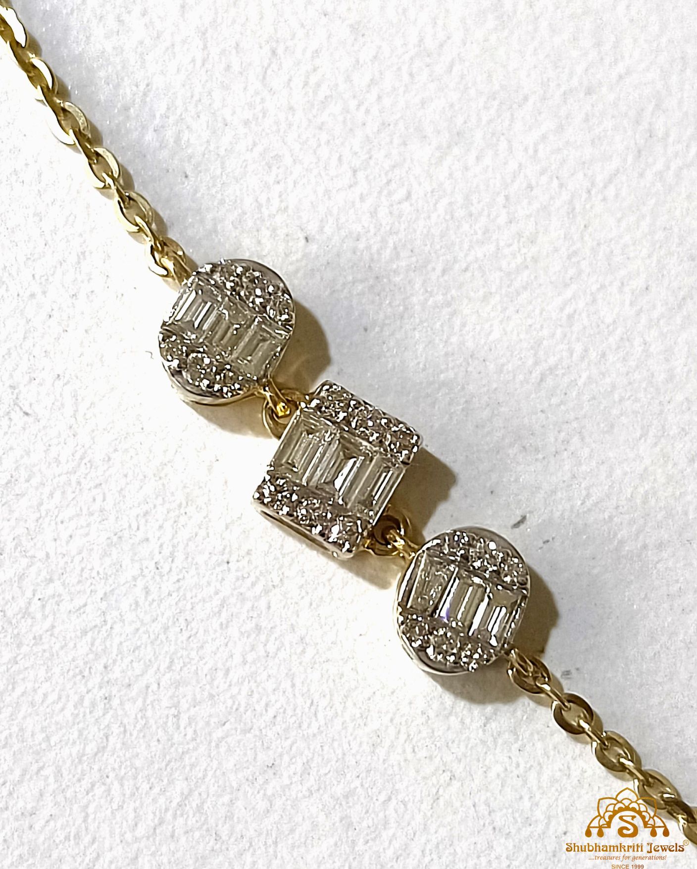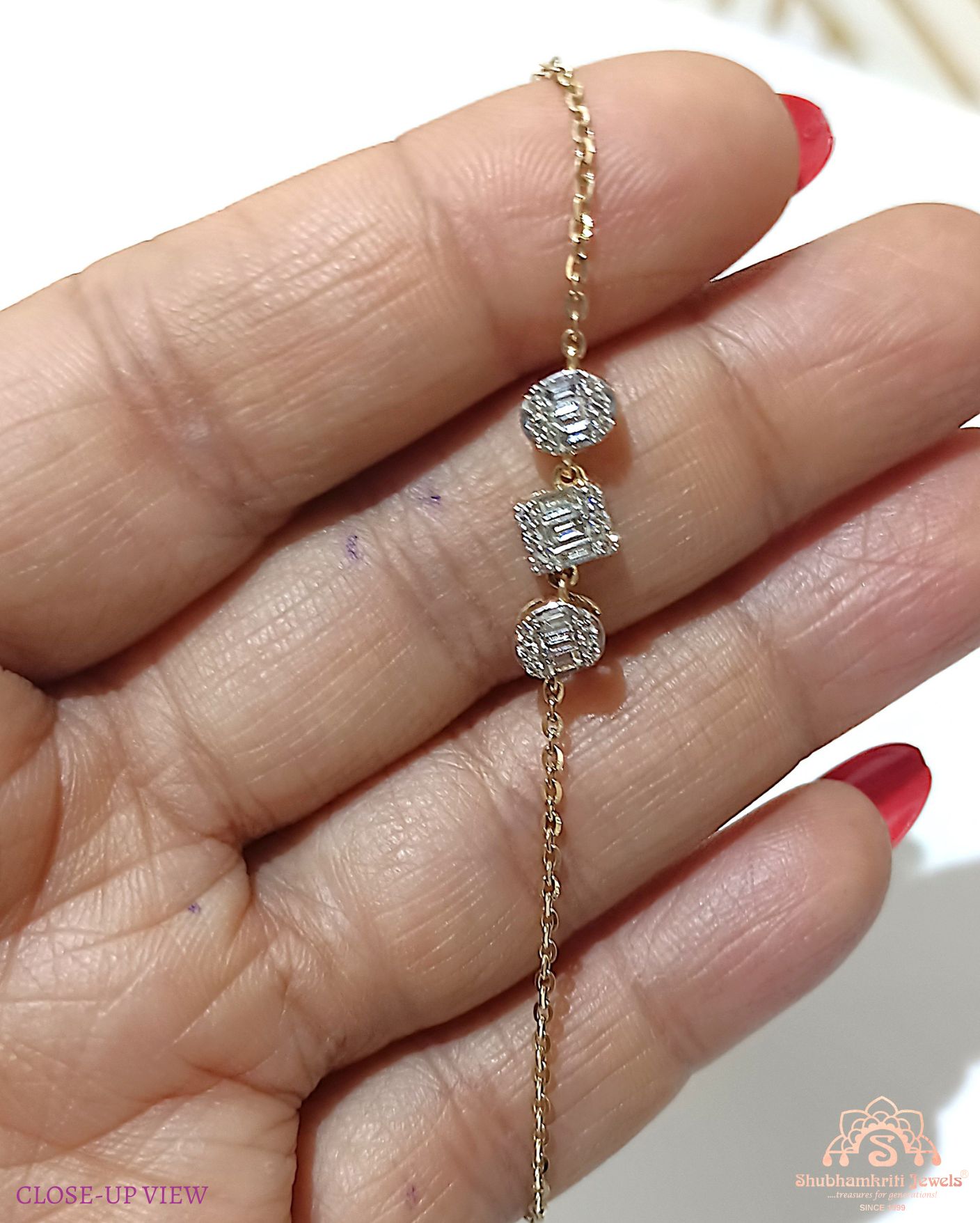 Discover the refined elegance of Shubhamkriti Jewels’ diamond bracelet, meticulously crafted in 14K gold. Featuring dazzling diamonds set in a delicate yet luxurious design, this bracelet is the perfect blend of sophistication and style. Ideal for every occasion, embrace timeless beauty with our exquisite collection. Shop now for ultimate elegance